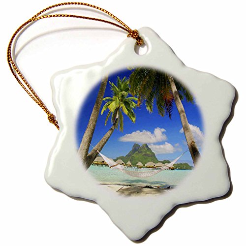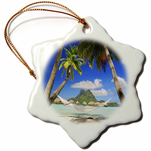 3dRose orn_54121_1 Bora Bora Relaxation Snowflake Porcelain Ornament, 3-Inch
