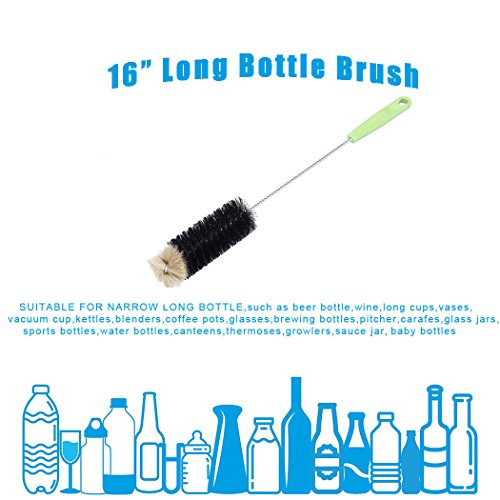 - 16" long bottle brush can easy reach the bottom and clean all inside area,BPA free and non-toxic materials, free from foreign smells, keep safe and healthy