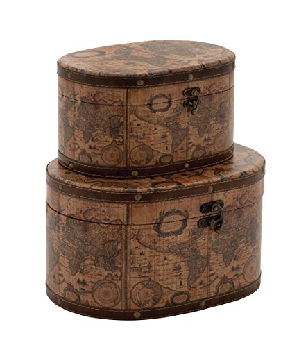 Deco 79 Wood Faux Leather Box, Set of 2