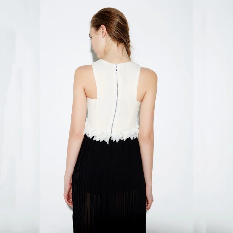 HDY Haoduoyi Solid Color Women T-shirts Sleeveless V Neck Cold Shoulder Crop Tops Women Zipper Back High Low Slim Chiffon Tees | |||||||||||||||||||||||||||||||||||||||