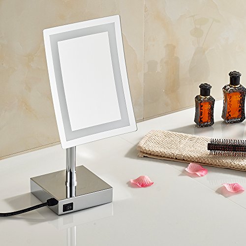 GuRun 8 inch Rectangle Tabletop LED Lighted Makeup Mirror Vanity Mirror with 3x Magnification,Chrome Finish M2239D(8in,3)