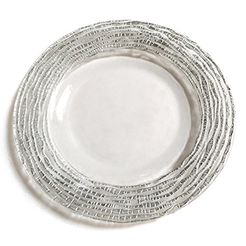 - Inspired by the organic tree bark like texture, silver leaf around the rim of this plate, while the center is clear glass