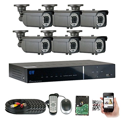 GWSecurity 8CH400WHD 8 Channel DVR + 6 x 1200TVL (720P) Vari-Focal Zoom 180 feet IR Outdoor / Indoor Security Camera System with Pre-Installed 1TB Hard Drive