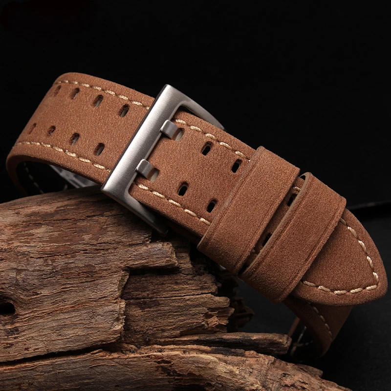 | [해외]최신! 프로스트 가죽 시계 밴드 남성 Rumenos 1945 1879 1801 군사 시계 스트랩 26 미리메터 시계 액세서리 |