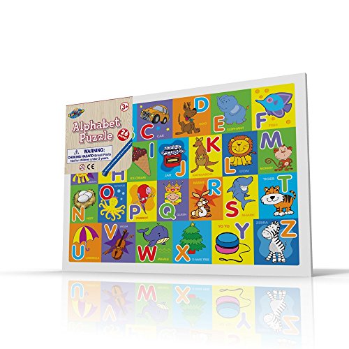 - 26 pieces alphabet puzzle - a smart game for smart babies - Helps learn alphabets while solving the puzzle - stimulates educational learning and creativity - Helps in development of motoring and cognitive skills - Made up of non-toxic, non-allergic and skin-friendly materials - Keeps the baby, toddlers, kids, occupied for hours - baby feels as if she is busy solving a mystery - Helps develop logical thinking and problem solving skills - Helps understand relationship between shapes and geometries - Alphabets can be used to form small words too - Large size Alphabets yet small enough to comfortably fit in toddler's hands, perfect for beginner - Superior quality finish and durable build - sure to last longer - Ideal for babies with 3 years of age - Ideal for both girls and boys - Finished perfectly for the sensitive skin of the toddler