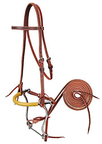 Studio : Colorado Saddlery Publisher : Colorado Saddlery Binding : Sports Product Description Made of high quality latigo leather. 5/8" double and stitched for strength. Complete with stainless steel hackamore bit with rubber covered chain noseband. 1/2"curb strap and 1/2" x 7' latigo leather reins. Nickel plated hardware and laced bit ends. 0