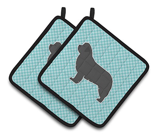 Caroline's Treasures Newfoundland Checkerboard Blue Pair of Pot Holders BB3764PTHD, 7.5HX7.5W, Multicolor