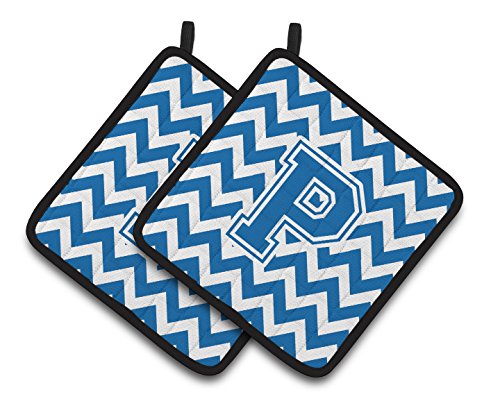 Caroline's Treasures Letter P Chevron Blue & White Pair of Pot Holders CJ1056-PPTHD, 7.5HX7.5W, Multicolor