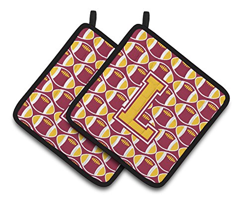 Caroline's Treasures Letter L Football Maroon & Gold Pair of Pot Holders CJ1081-LPTHD, 7.5HX7.5W, Multicolor