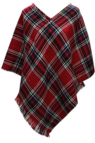 Title : VamJump Women Winter Plaid Houndstooth Tartan Fringe Poncho Cape Shawl Red