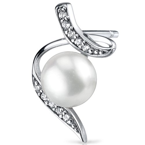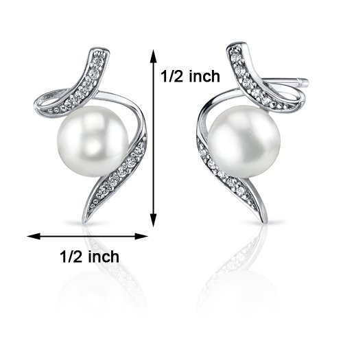 Pearls: 6.5mm Freshwater Cultured White Pearl, Round Button Shape with High Luster. Side Stones: 20 pieces Super Sparkling Machine Cut White Cubic Zirconia. Earrings: 2.12 grams pure Sterling Silver with and .925 Stamp. Earrings feature stud posts with secure friction backings. Perfect gift for Mothers Day, Birthdays, Valentines Day, Graduation, Christmas or just about any other occasion. Money Back Guarantee. Includes a Signature Gift Box. Style SE8342Feature