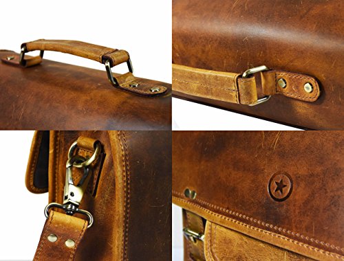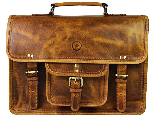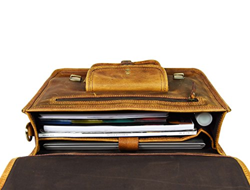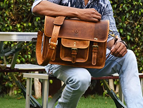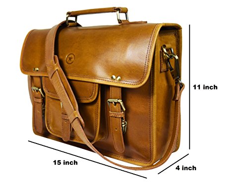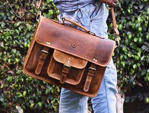 -. Brand : Aaron Leather -. Department : unisex-adult (lage only) -. Feature : **SPACIOUS AND VERSATILE - Three Compartments With Inner Walls That Are Cushioned For Keeping Laptop/Macbook/IPad etc.| Two Zippered Internal Pockets | One External Zipped Pocket With Flap cover | Full Flap Cover That Fastens Down Via Magnetic Buttons / **STURDY AND DURABLE - Handcrafted With Genuine Goat Leather | Olive Green Heavy Duty Canvas Lining | High-quality Stitching | Brass Buckles & Strong Zippers | Heavy Duty Genuine YKK Zippers / **STYLISH AND ELEGANT - A Unique, Eye-catching Red Vintage Look Messenger Bag That Is Solid, Sturdy And Reliable | Looks High End With Casual And Formal Attire | Great For Students, Business Or Travelers Who Want To Make A Fashion Statement. / **DIMENSIONS - 15"(Length) x 11"(Height) x 4"(Depth) | Adjustable Strap With Max Length 55" / **PERFECT GIFT- A Wise And Thoughtful Gift For Active Students & Professionals. -. Label : Aaron Leather -. Manufacturer : Aaron Leather -. ProductGroup : Apparel -. ProductTypeName : LAGE -. Publisher : Aaron Leather -. Size : One_Size -. Studio : Aaron Leather -. Title : 15” Vintage Handmade Leather Messenger Satchel Bag | Briefcase Bag By Aaron Leather