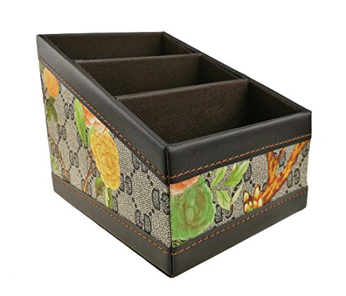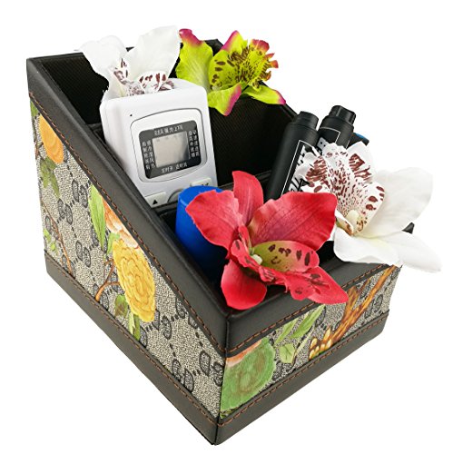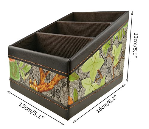 3 Slot PU Leather Flowers and Birds Desk Storage Box Case For Remote Control/CD Organizer/Candy/Mail/Headgear/Small Stuff