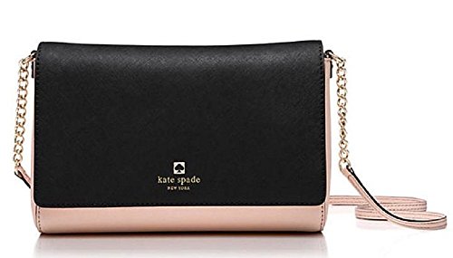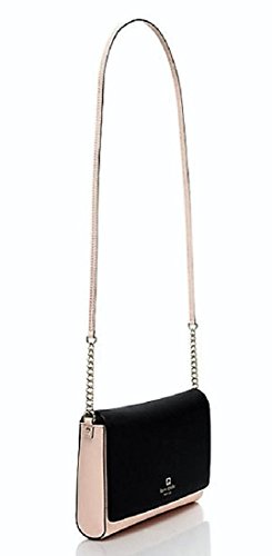 Be a fashionista with this Kate Spade New York Charlotte Street Colorblock Alek in soft rose and black leather, Capital Kate jacquard lining, and gold foil embossed Kate Spade New York signature with spade stud. Style # WKRU3868