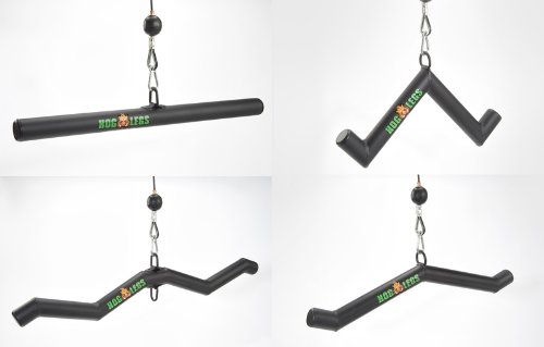 Studio : LPGmuscle Publisher : LPGmuscle Binding : Misc. Product Description Fill those hands with HOG LEGS Fat for a Big Arm swell no skinny bars can match. Get in on a Gym Cable Machine Weight Plate feeding frenzy with HOG LEGS custom curves. Experience maximum Multi Directional Muscle Targeting and less joint stress with this custom cable arm bar set . Go Hog wild on that next cable workout and find out for yourself just how righteous 'Live Action' training can be. HOG LEGS Cable Gym Bars are USA made Commercial Grade and feature Lifetime Replacement Warranties. This Four Bar Set Includes one each; HAM BONE, PORK CHOP, HAM HOCK, SUBPRIMAL. TM 0