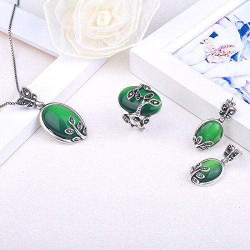 Size:necklace length: 45.5+5cm, pendant size: 3.6*2cm; earring size: 1.5*2.3cm; ring:size 8; total weight: 45g;