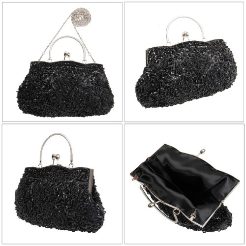 -. Brand : b.m.c -. ClothingSize : Small -. Department : womens -. Feature : TURN HEADS with these GORGEOUS fashion clutch handbags from our Exuding Eloquence Collection / COMPACT, YET SPACIOUS this bag has the following dimensions 11 in (L) X 1.5 in (W) X 6.75 in (H) / SECURE CLOSURE - features kissing lock clasp to keep your bag closed and items safe / ULTRA STYLISH EXTERIOR - these fashion clutches shine and are made up of beads, sequins and satin / OTHER DETAILS - Max Opening: 5.5 inches. Handle Drop: 2.6 in. -. Label : Bundle Monster -. Manufacturer : Bundle Monster -. NumberOfItems : 1 -. ProductGroup : Shoes -. ProductTypeName : HANDBAG -. Publisher : Bundle Monster -. Size : Small -. Studio : Bundle Monster -. Title : BMC Beaded Sequin Design Metal Frame Kissing Lock Satin Interior Evening Clutch