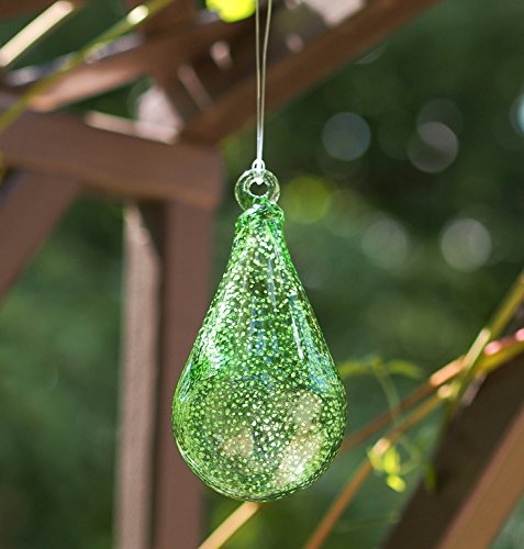 Teardrop shaped glass ornament comes with heavy duty monifiliment hanging line