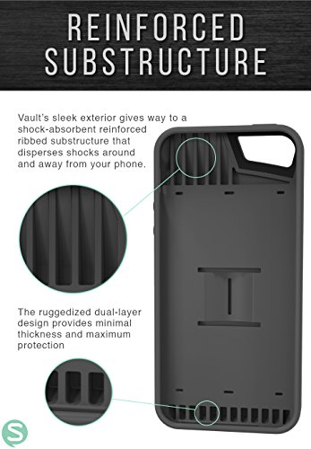 The Vault by Silk is an ultra slim wallet case for iPhone 5/5s/SE that comfortably fits 3 cards plus cash. The durable soft-touch cover provides full-frame protection on all 4 corners to protect your phone from drops and dings. The soft-touch finish provides the perfect amount of grip and an ultra slim fit to slide in your pocket without sticking to the liner. Vault's sleek exterior gives way to a shock-absorbent reinforced ribbed substructure that disperses shocks around and away from your phone. Natural-Throw buttons provide a tactile response from each click to maintain an organic connection with the phone. Vault case marries the essentials of a wallet to the form factor of your iPhone.