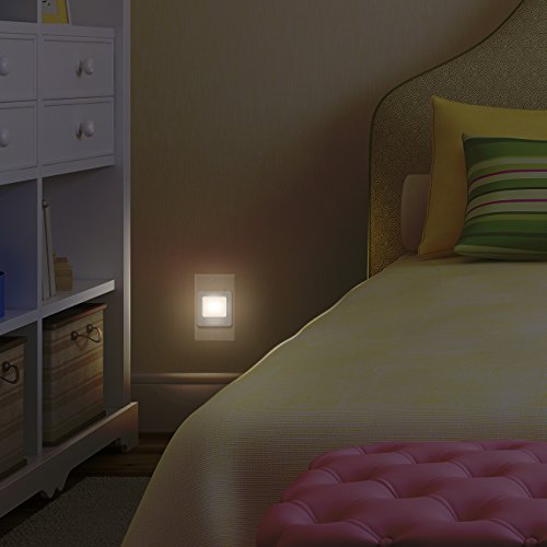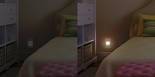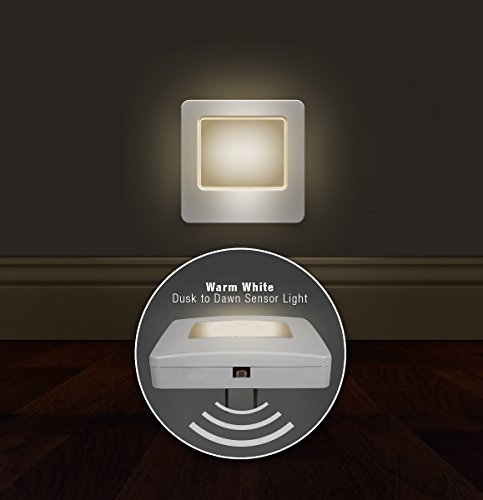 INCLUDES two plug-in LED night lights with a warm white glow and dusk to dawn setting in darkness