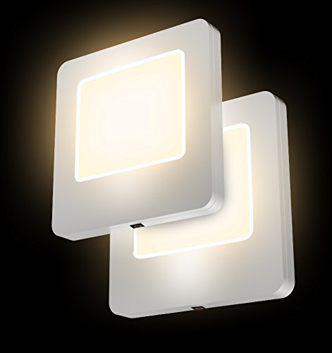 LED Concepts Pack of 2 Plug-In LED Night Lights – Ultra Slim, Cool-Touch Design – Great for Bedroom, Bathroom, Hallway, Stairways, or Any Dark Room (Warm White)
