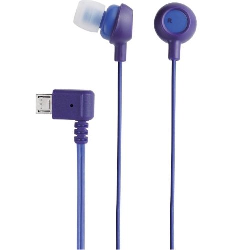 Canal type stereo headphones that can be connected to a smartphone equipped with a microUSB terminal (female) for voice input and output.