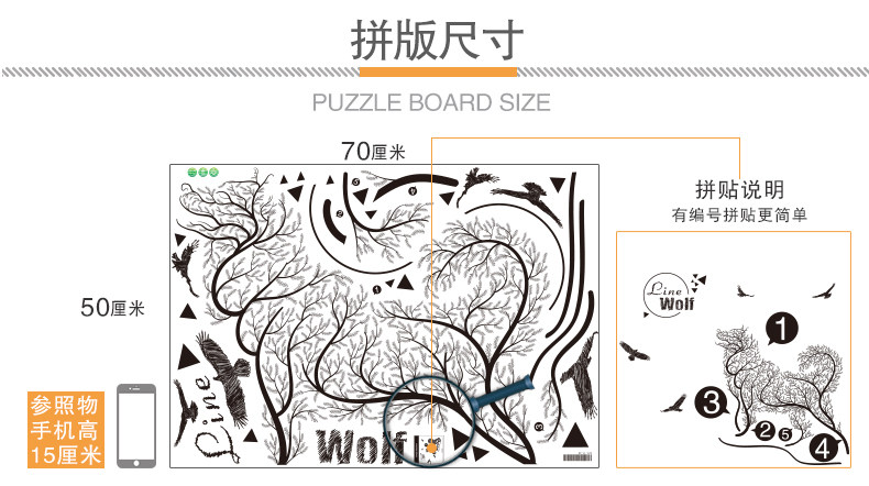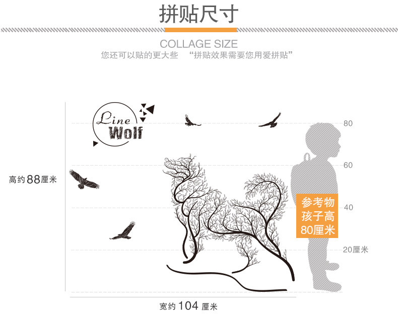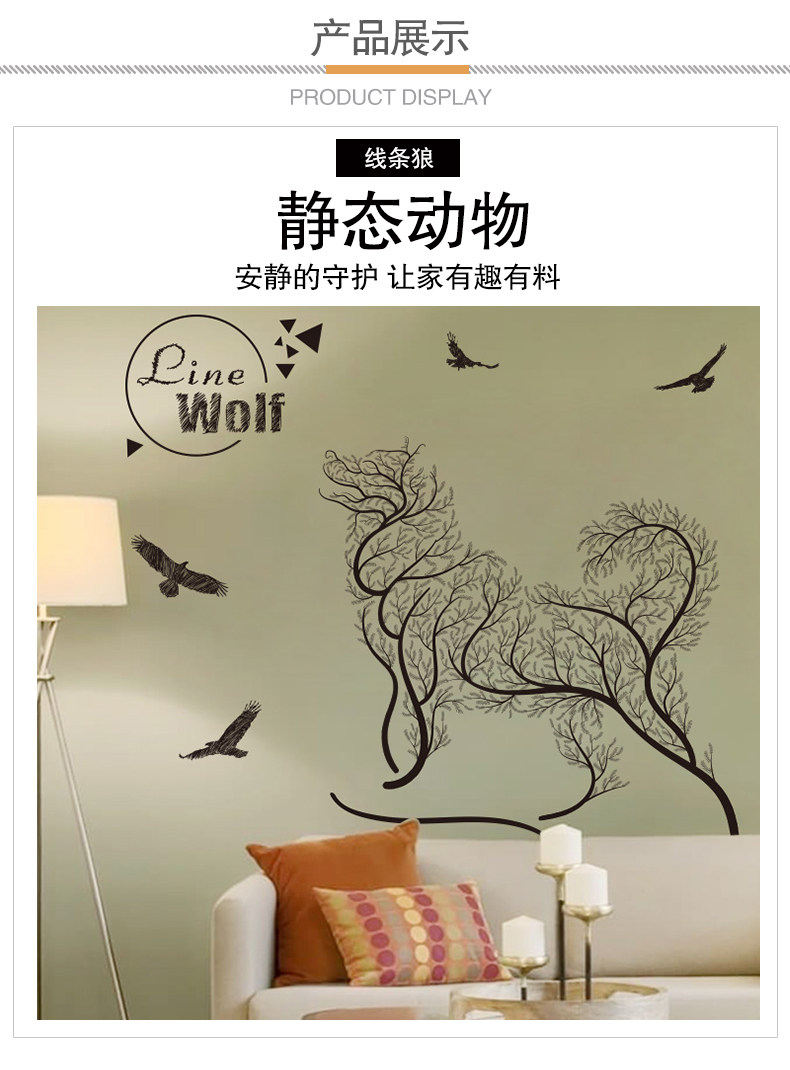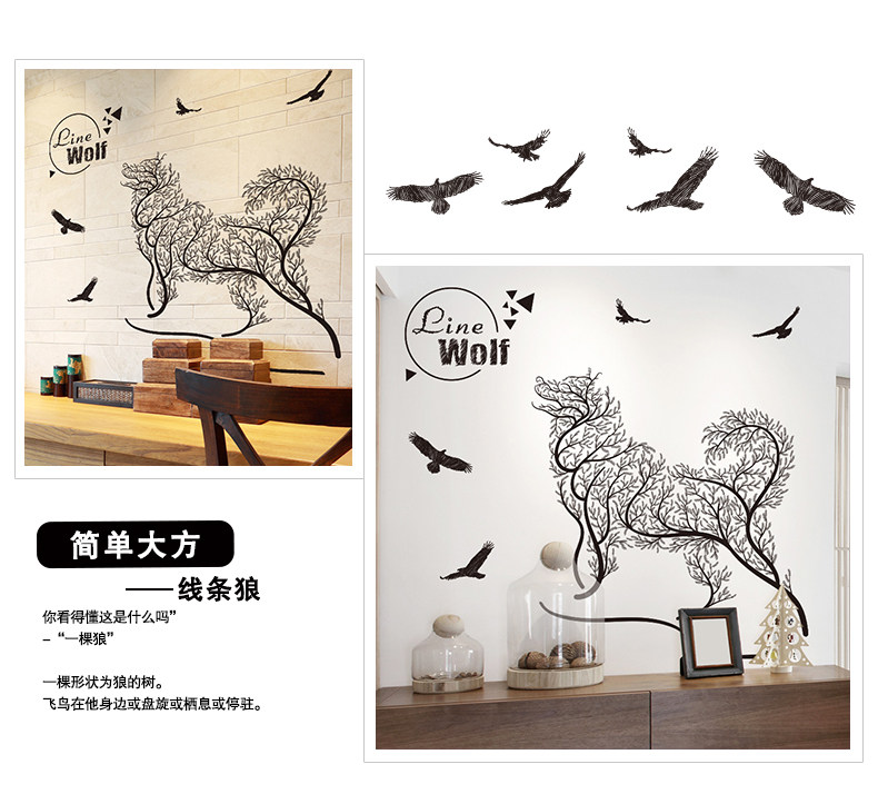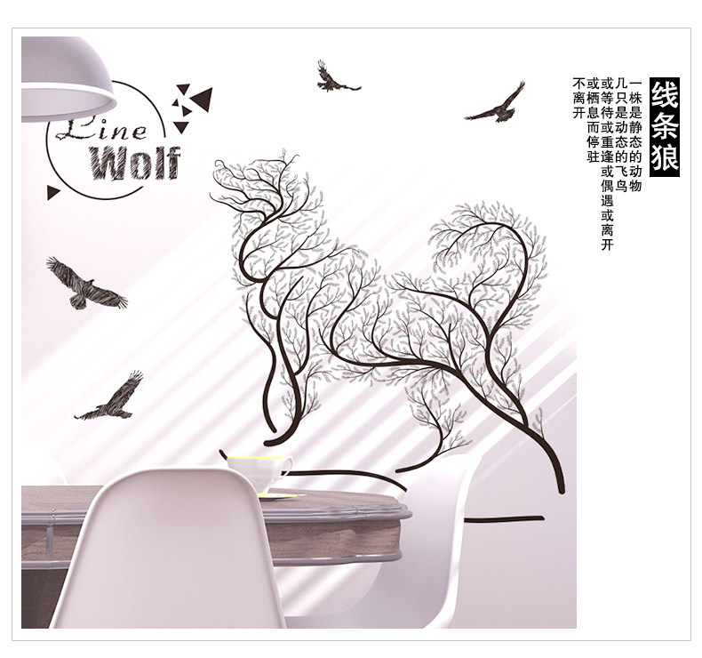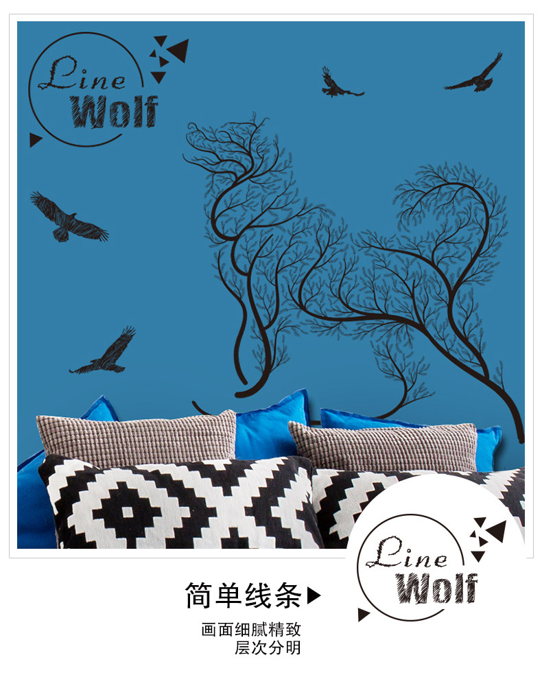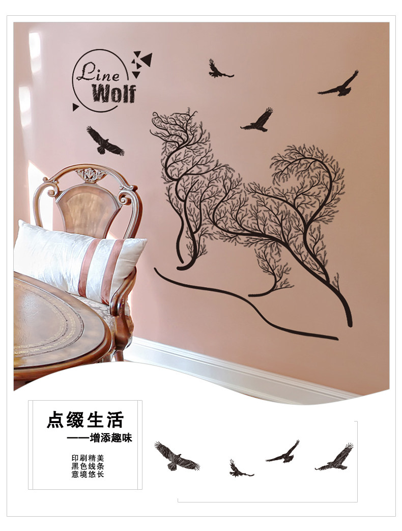 卧室温馨创意个性 小清新自粘墙贴纸贴画壁纸墙纸宿舍装饰 线条狼