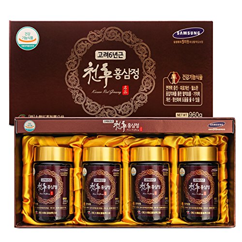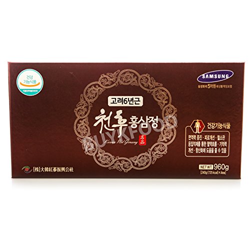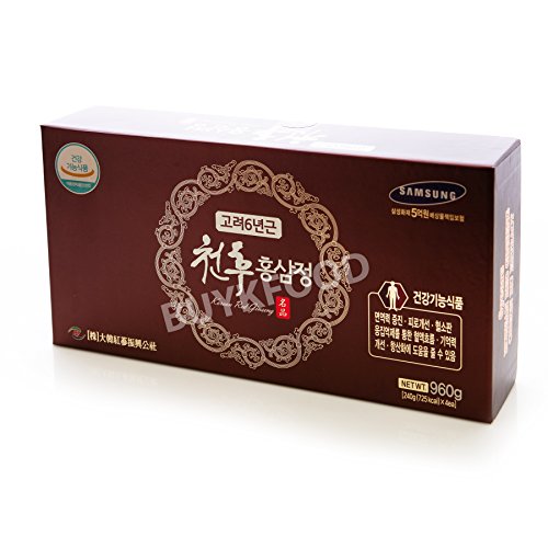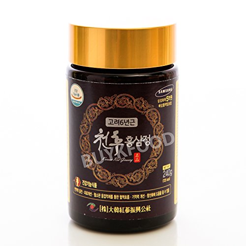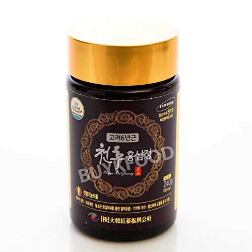 Studio : Daehan Red Ginseng Promotion Corporation Publisher : Daehan Red Ginseng Promotion Corporation Binding : Health and Beauty Product Description Korean 6Years Root Red Ginseng Gold Extract 240g(8.5oz) X 2EA ● PACKING : 240g(8.5oz) x 2 Glass bottles. ● INGREDIENTS : - Korean 6 years Red Ginseng - 15% (Saponin/Ginsenoide, Rg1 Rb1 Rg3=4mg/g, Solid Contents = Above 60%) - Herb Mixture Extracts - 67% (Solid Contents = Above 70%, Korean Jujube 9%, Korean angelica root 9%, Kudzu root 9%, Korean Mugwort 8%, Korean motherwort 8%, Korean chrysanthemum 8%, Foxglove, Cnidium, Atractylis Japonica, Peony, Milk vetch root, Poria cocos, Reishi Mushroom, Licorice. - Glyopexis 27%, Refine Water ● DIRECTION 5g(0.2oz, 1 spoon) per a time, 3 Times daily. Eat as it is or by dissolving in (hot/cold)water. ● Expiration Date : 3 Years from Manufacturing Date. (At least 2 years from your Purchase Date.) ● Manufacturer : Daehan Red-Ginsing Promoting Corporation 0