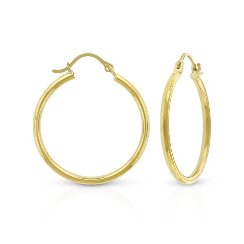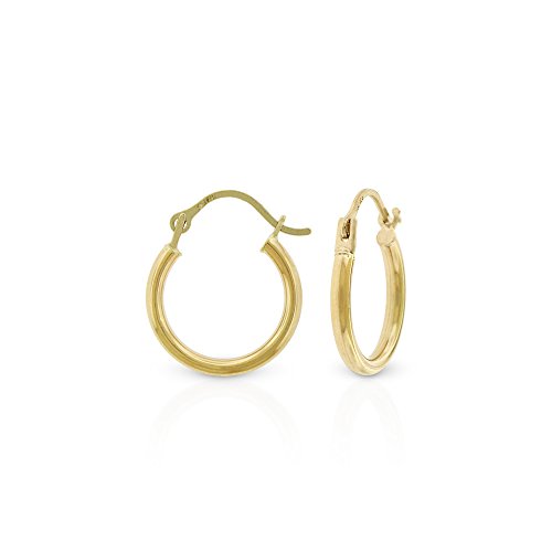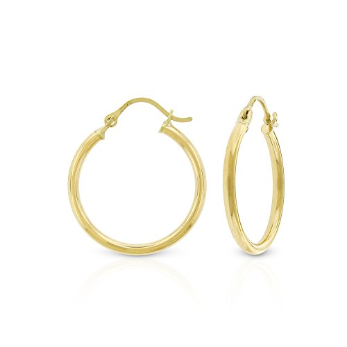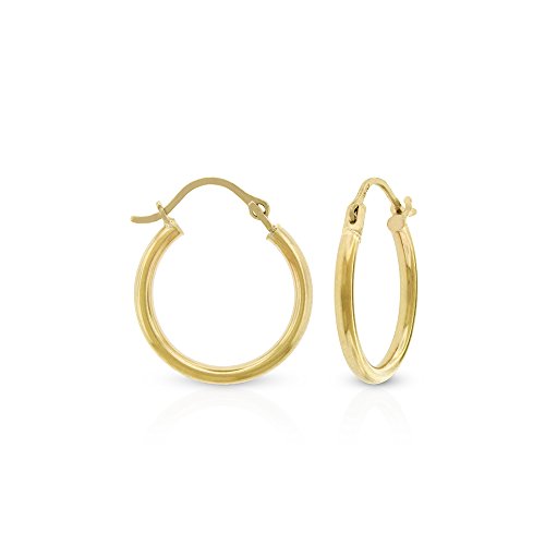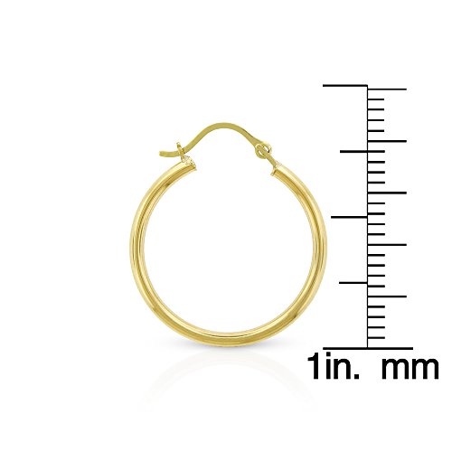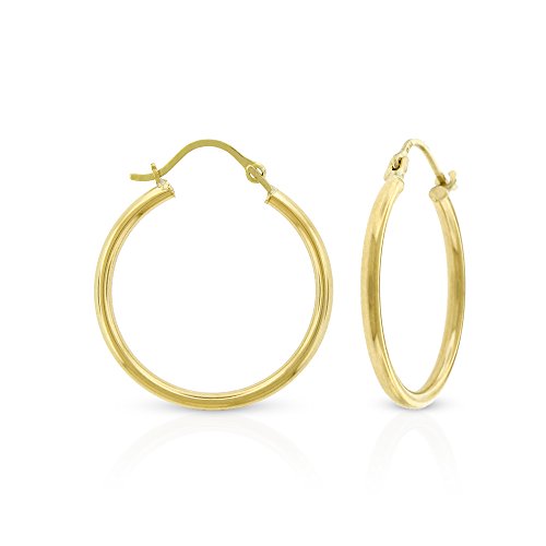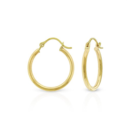 • Material: 14k Yellow Gold • Style: High Polish Hoops • Sizes: 14mm - 24mm • Width: Approx. 2mm Thick • 14k Stamped • Real 14k Gold. NOT Plated • Gift Box Included