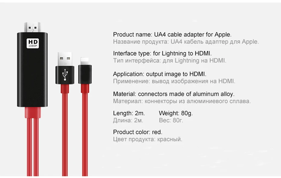 for ios phone cable to hdmi cable:8pin to HDMI Cable With retail package