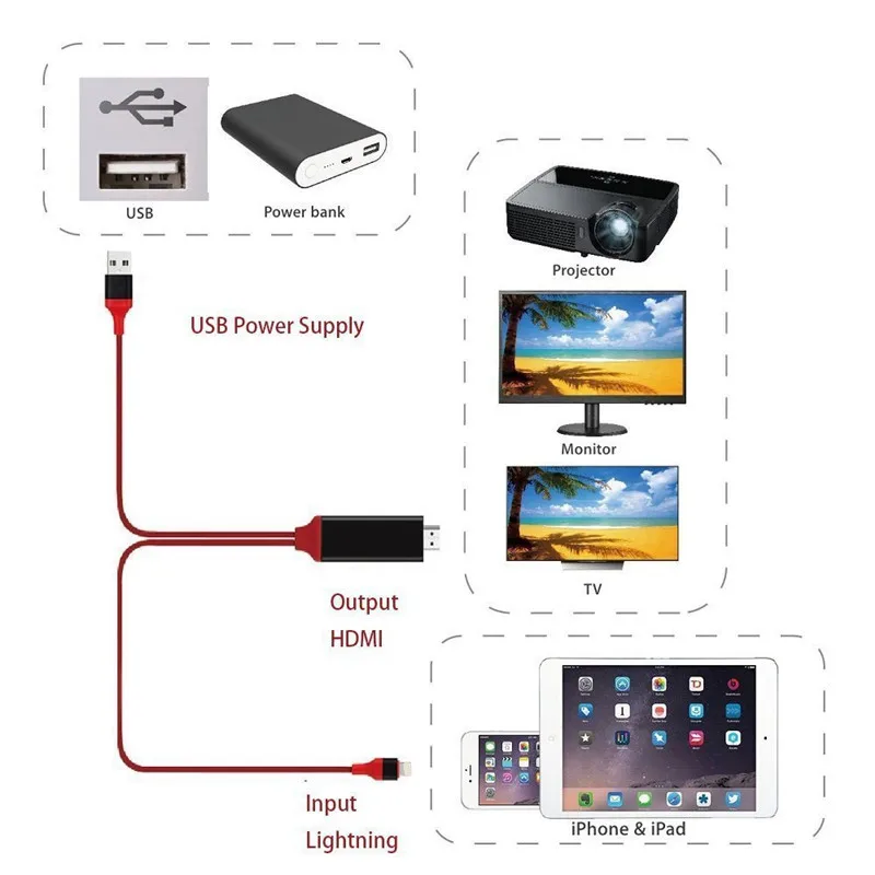 av cable adapter:USB for lightning 8 pin to hdmi hdtv cable