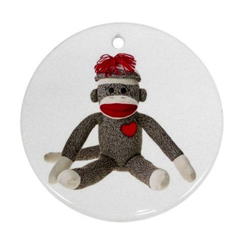 Sitting Sock Monkey Round Porcelain Ornament or Wall Decor