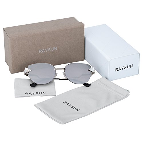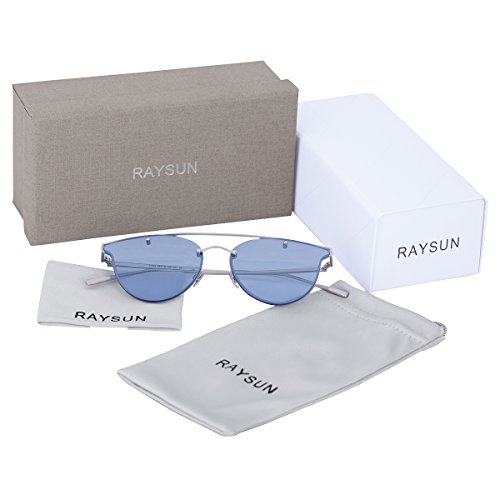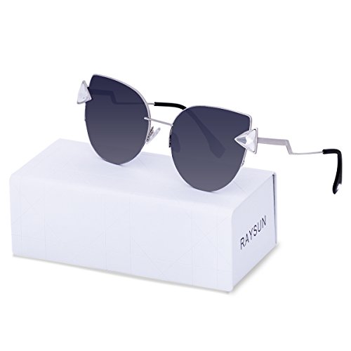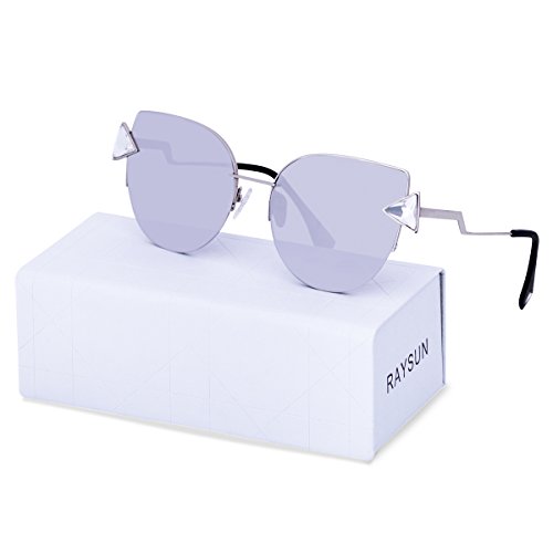 RAYSUN Cat Eye Women Sunglasses Polarized Mirrored Fashion Flat Lenses Metal Glasses (Sliver1)
