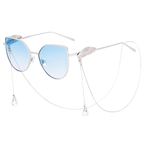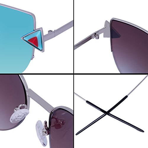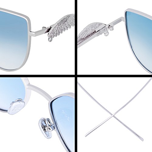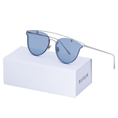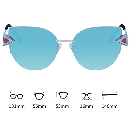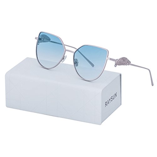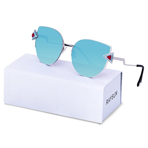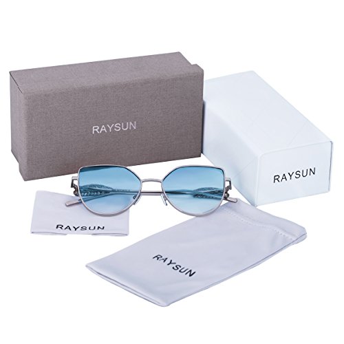 RAYSUN Women Cat Eye Mirrored Lenses Sunglasses Fashion Gradient Metal Frame UV 400 Lightweight Fashion Glasses (Blue)