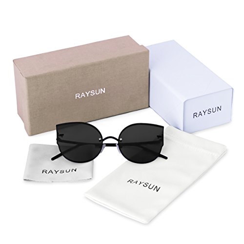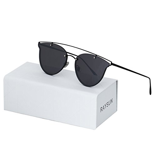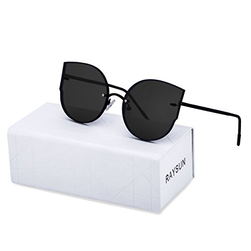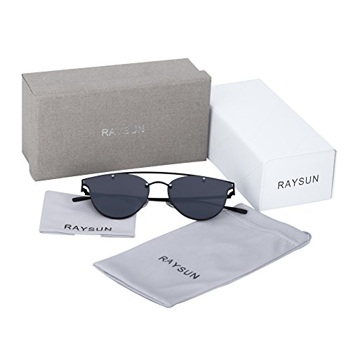RAYSUN Cat Eye Women Sunglasses Polarized Mirrored Fashion Flat Lenses Metal Glasses (Gray1)