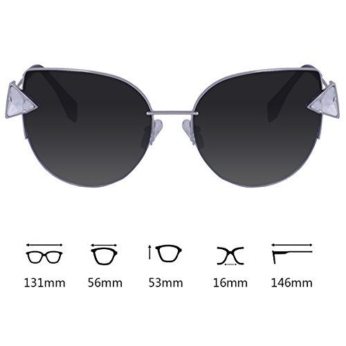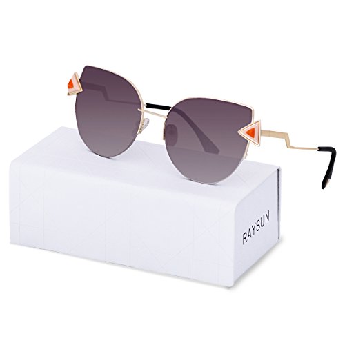 RAYSUN Women Cat Eye Mirrored Lenses Sunglasses Fashion Gradient Metal Frame UV 400 Lightweight Fashion Glasses (Grey)