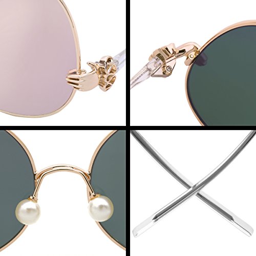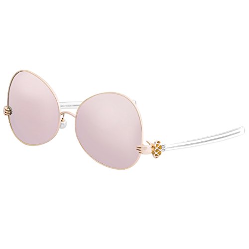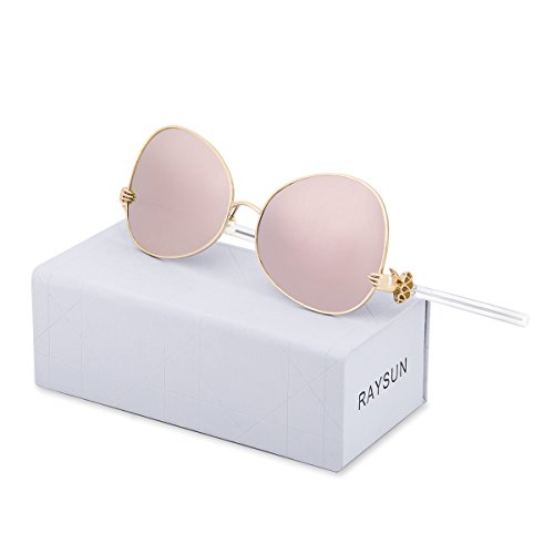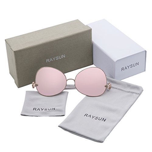 RAYSUN Women Oval Sunglasses Mirrored Eyewear Metal Frame Aviator Oversized UV 400 lens fashion plastic glasses (Rose Gold1)