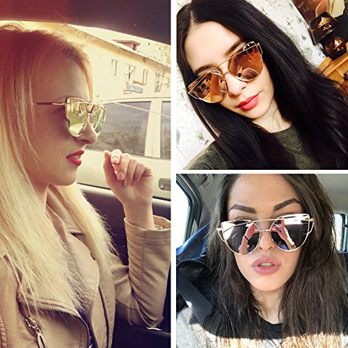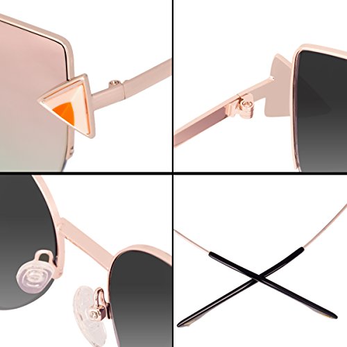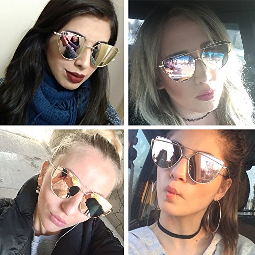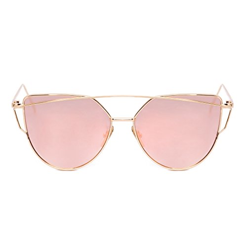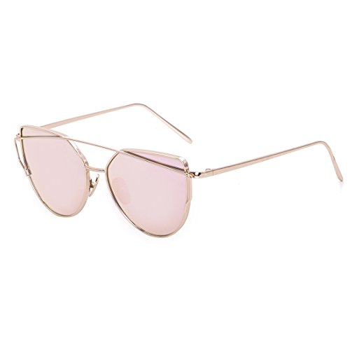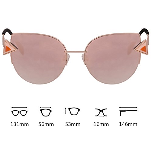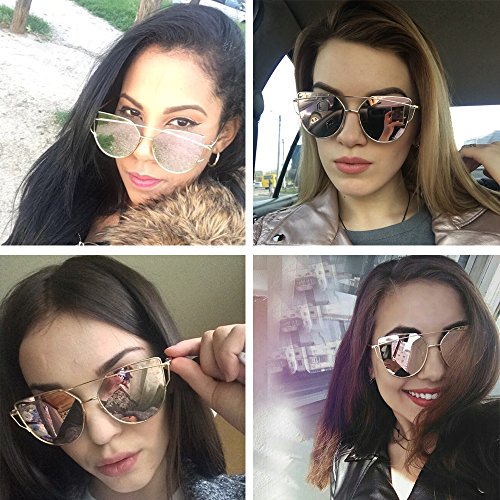 RAYSUN Women Cat Eye Mirrored Lenses Sunglasses Fashion Gradient Metal Frame UV 400 Lightweight Fashion Glasses (Rose gold)