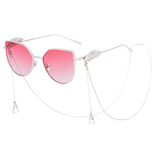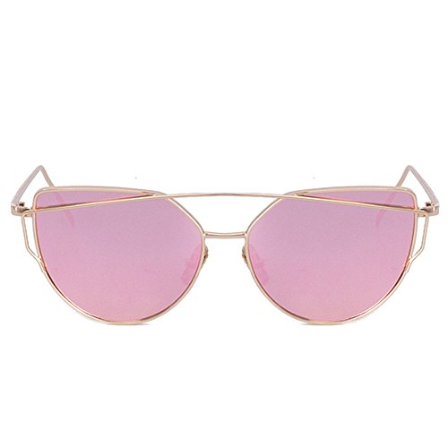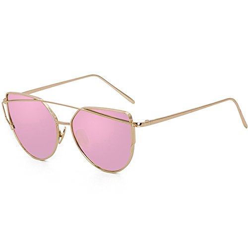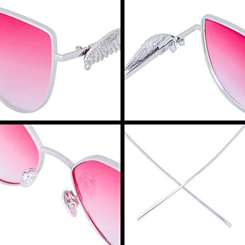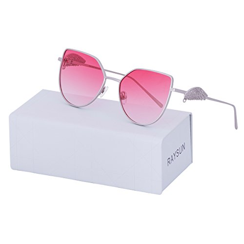 RAYSUN Women Cat Eye Mirrored Lenses Sunglasses Fashion Gradient Metal Frame UV 400 Lightweight Fashion Glasses (Pink)