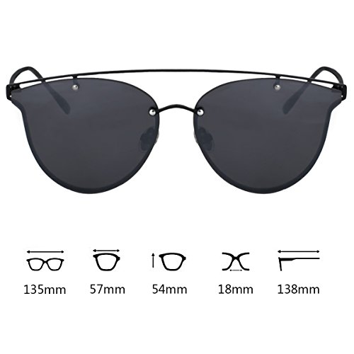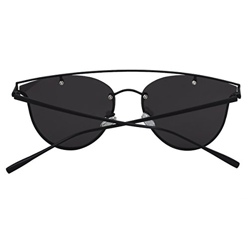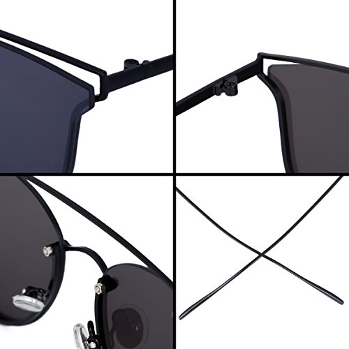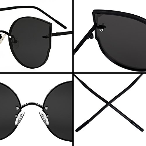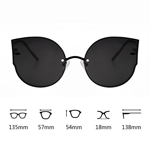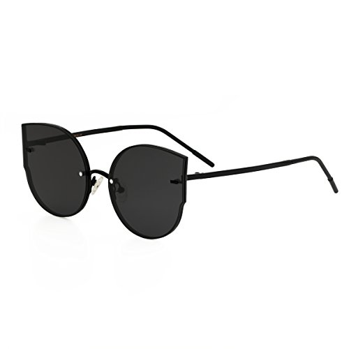 RAYSUN Women Cat Eye Mirrored Flat Lenses Sunglasses Rimless Trendy Frameless Fashion Metal Frame Cute Glasses (Grey)