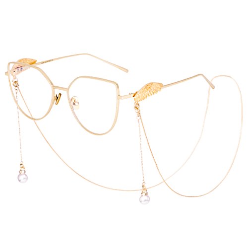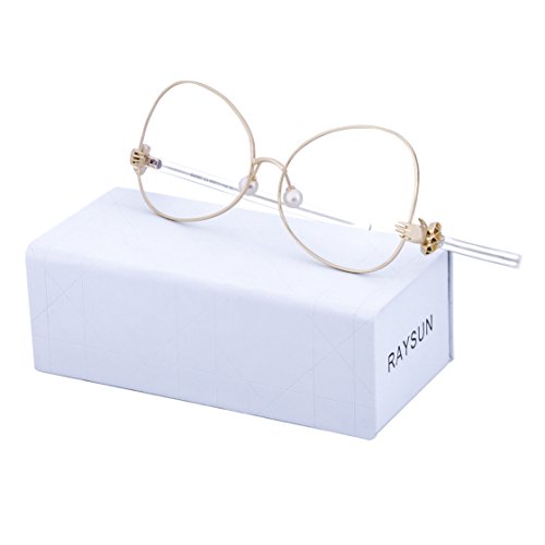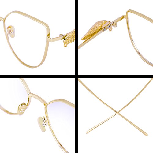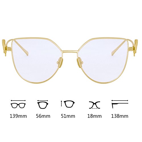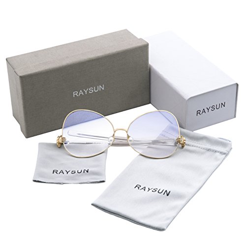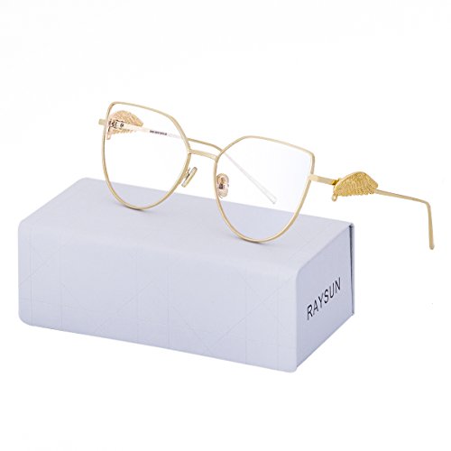RAYSUN Women Cat Eye Gradient Sunglasses Transparent Metal Frame Flat Lenses UV 400 Stylish Fashion Trendy Glasses (Gold)