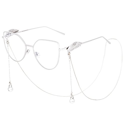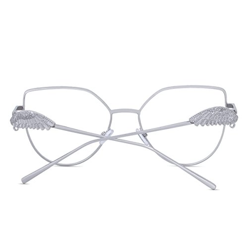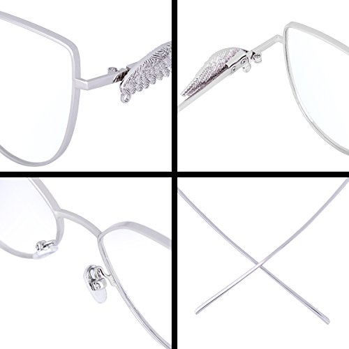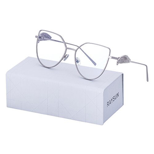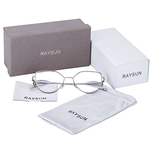 RAYSUN Women Cat Eye Gradient Sunglasses Transparent Metal Frame Flat Lenses UV 400 Stylish Fashion Trendy Glasses (Silver)