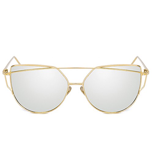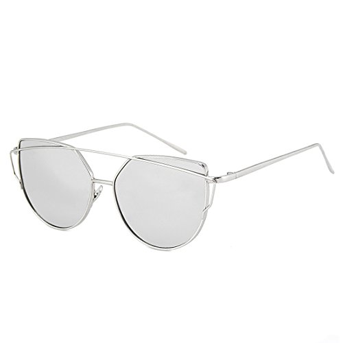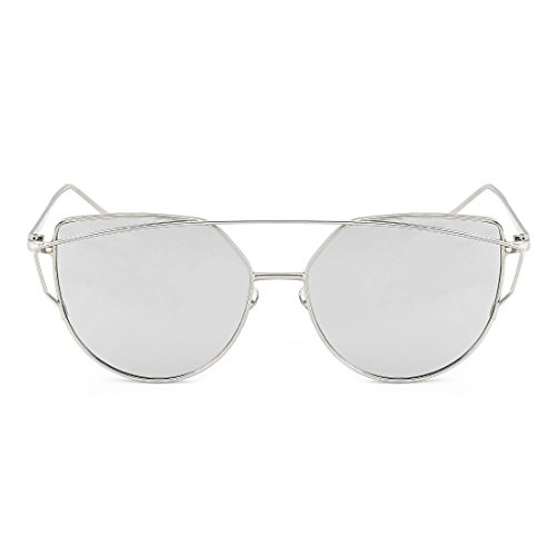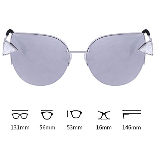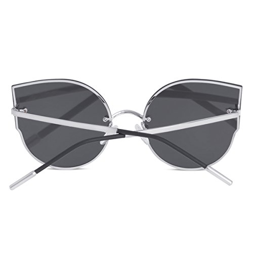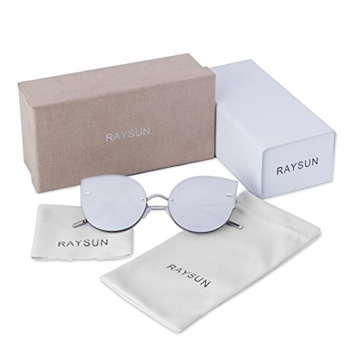 RAYSUN Cat Eye Women Sunglasses Polarized Mirrored Fashion Flat Lenses Metal Glasses (Sliver2)