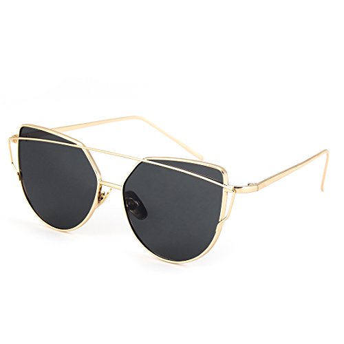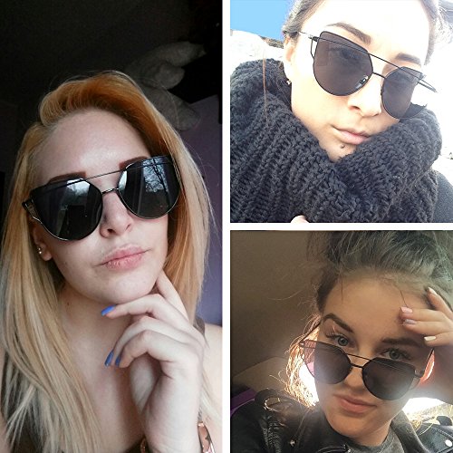 RAYSUN Cat Eye Women Sunglasses Polarized Mirrored Fashion Flat Lenses Metal Glasses (Gray2)