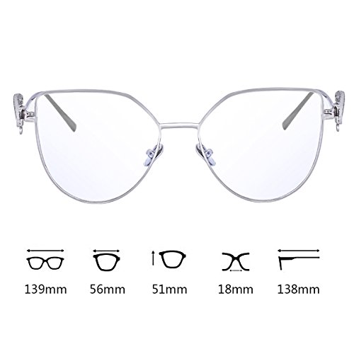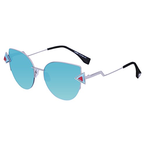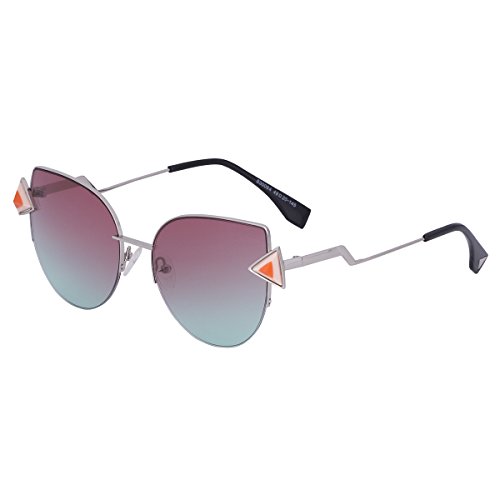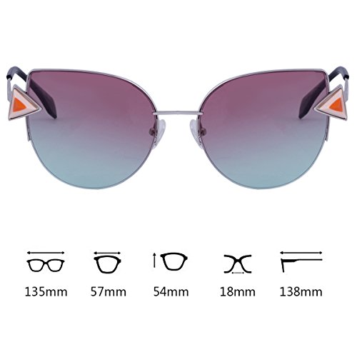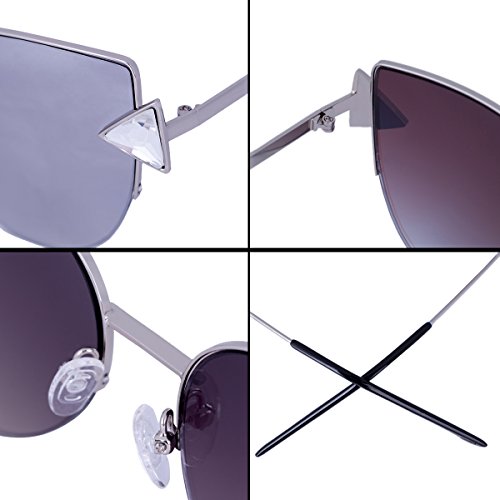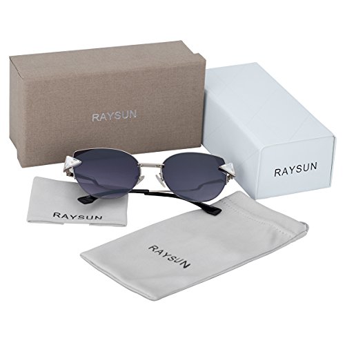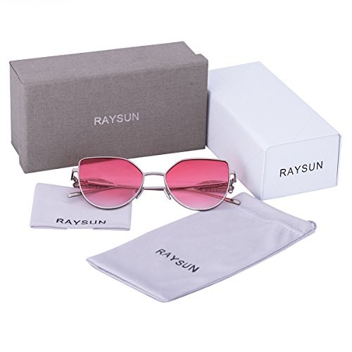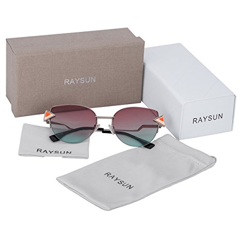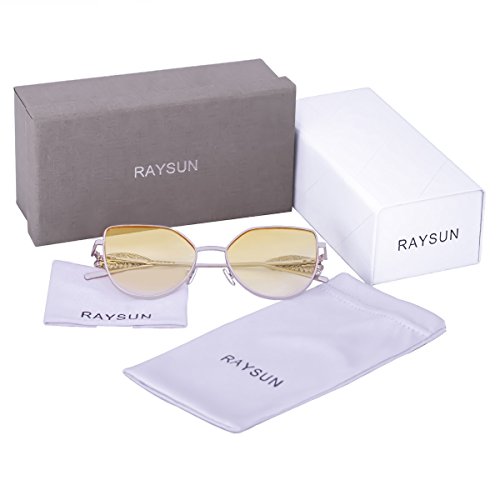 RAYSUN Women Cat Eye Mirrored Lenses Sunglasses Fashion Gradient Metal Frame UV 400 Lightweight Fashion Glasses (Silver)