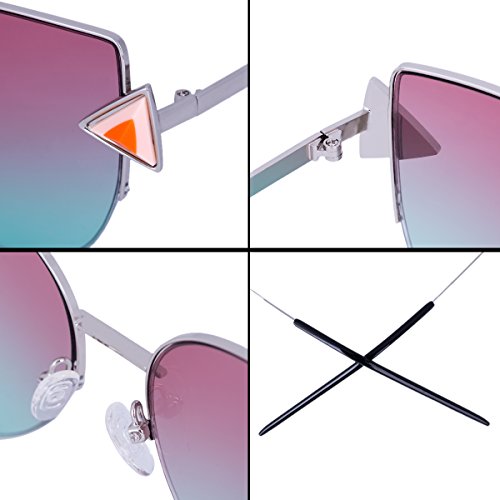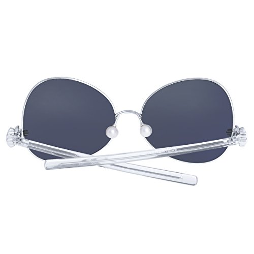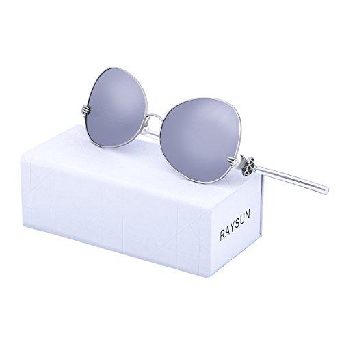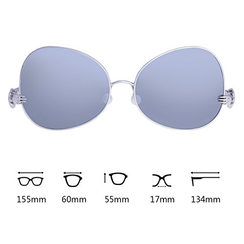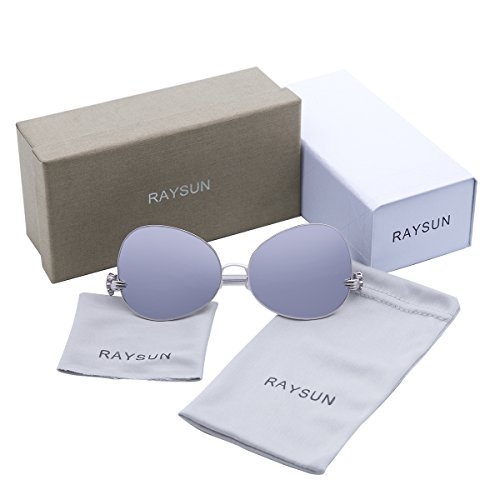 RAYSUN Women Oval Sunglasses Mirrored Eyewear Metal Frame Aviator Oversized UV 400 lens fashion plastic glasses (Silver2)