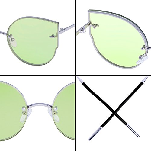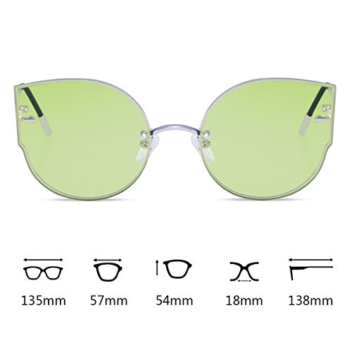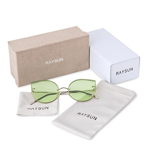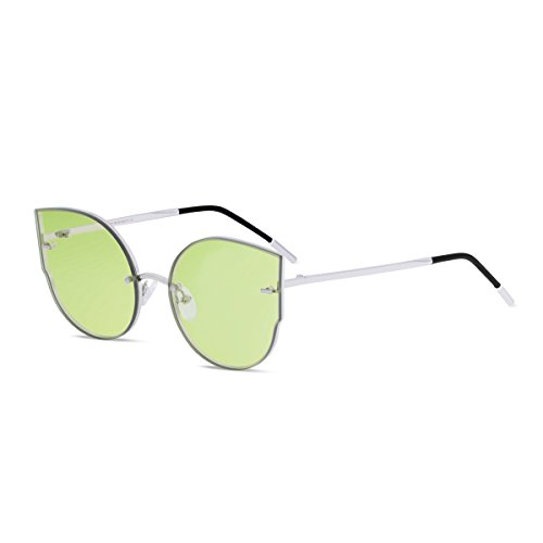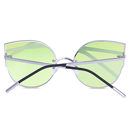 RAYSUN Women Cat Eye Mirrored Flat Lenses Sunglasses Rimless Trendy Frameless Fashion Metal Frame Cute Glasses (Green)
