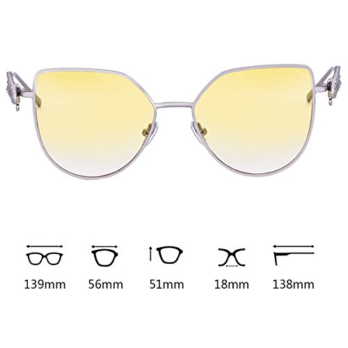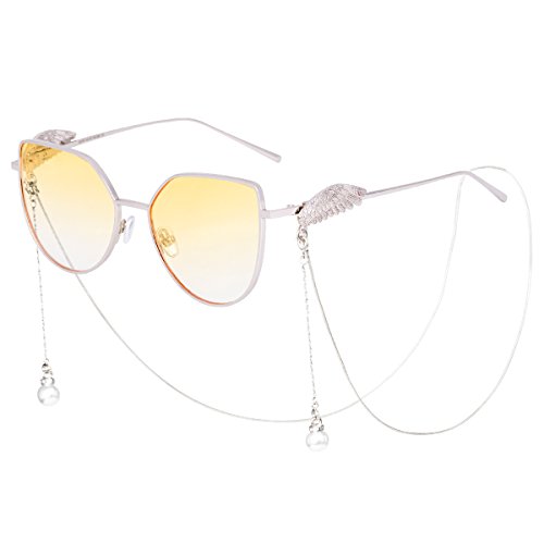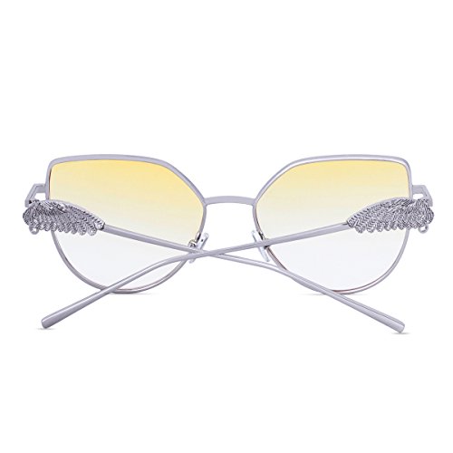 RAYSUN Women Cat Eye Gradient Sunglasses Transparent Metal Frame Flat Lenses UV 400 Stylish Fashion Trendy Glasses (Yellow)
