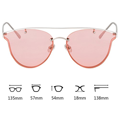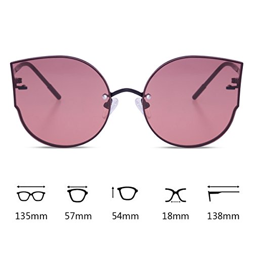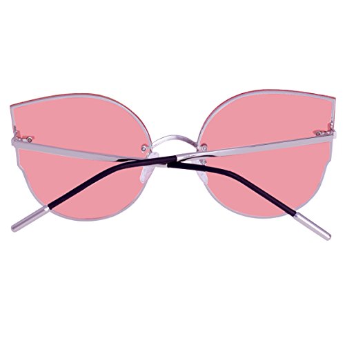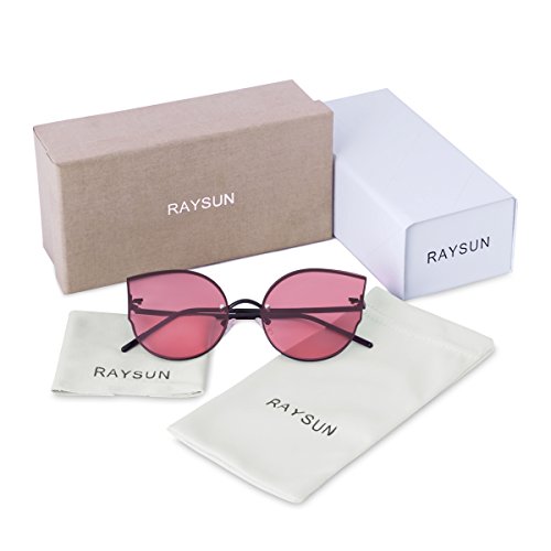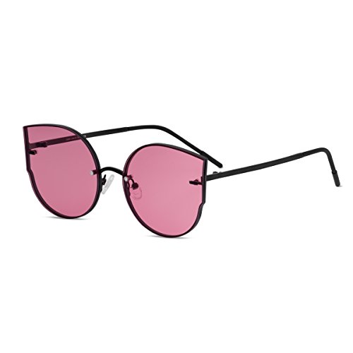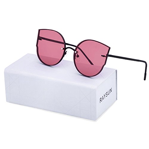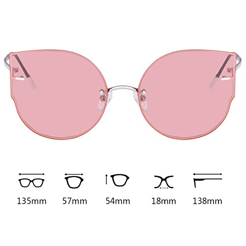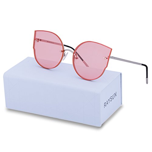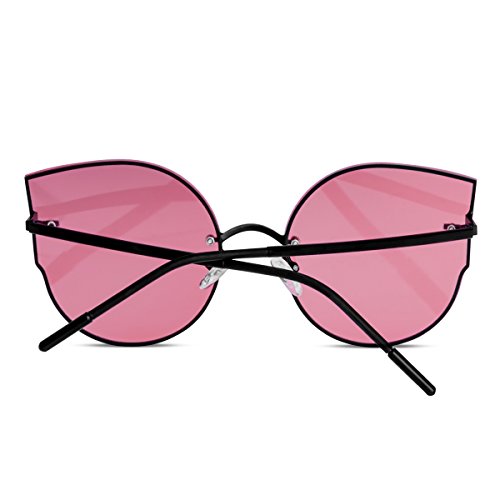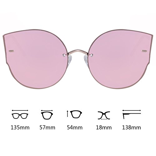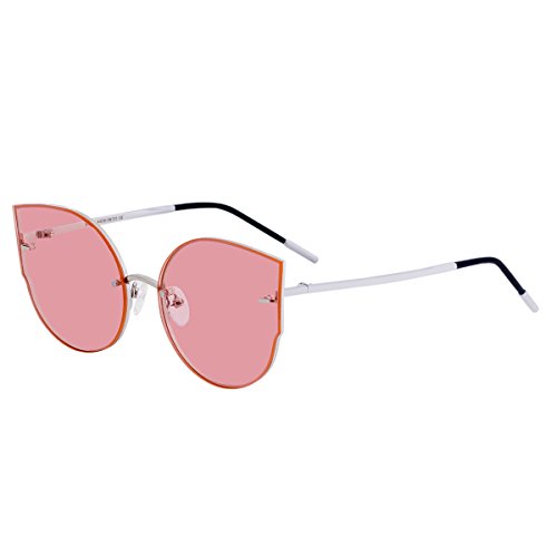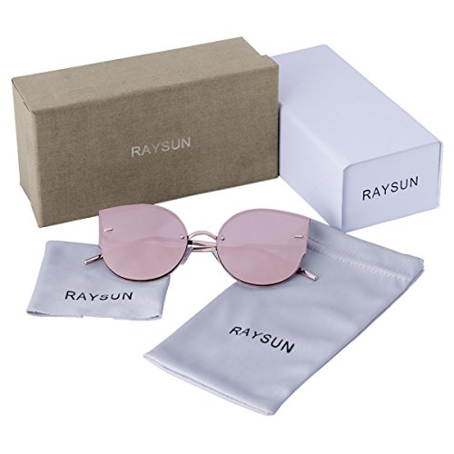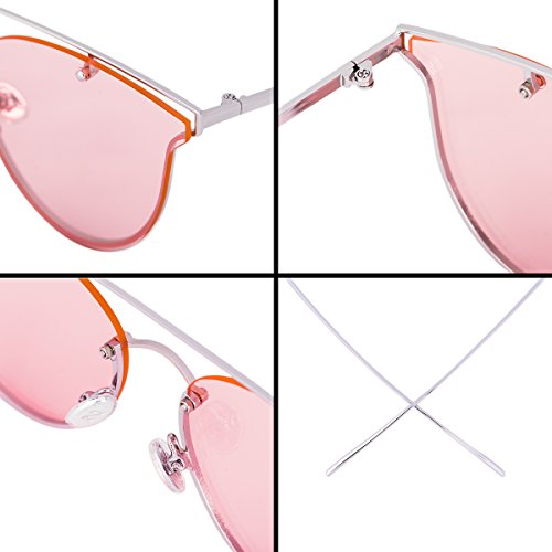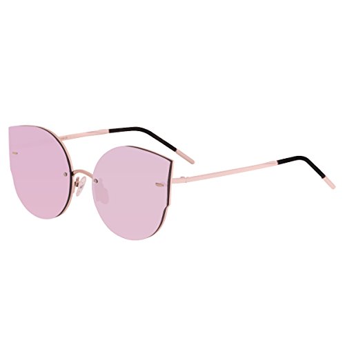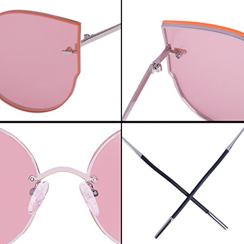 RAYSUN Women Cat Eye Mirrored Flat Lenses Sunglasses Rimless Trendy Frameless Fashion Metal Frame Cute Glasses (Pink)