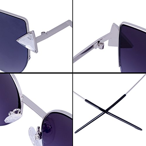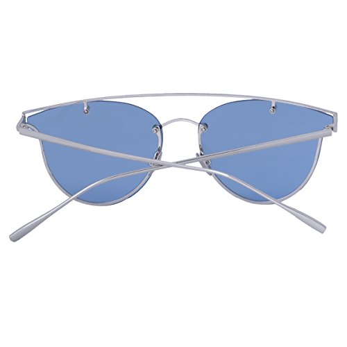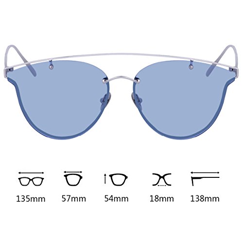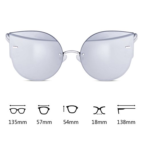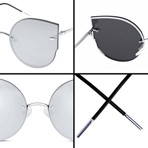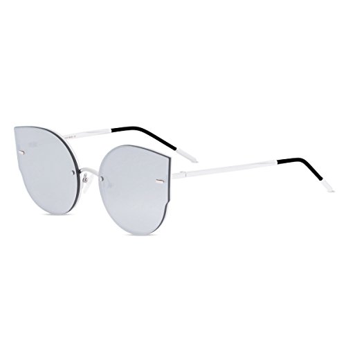RAYSUN Women Cat Eye Mirrored Flat Lenses Sunglasses Rimless Trendy Frameless Fashion Metal Frame Cute Glasses (Silver)